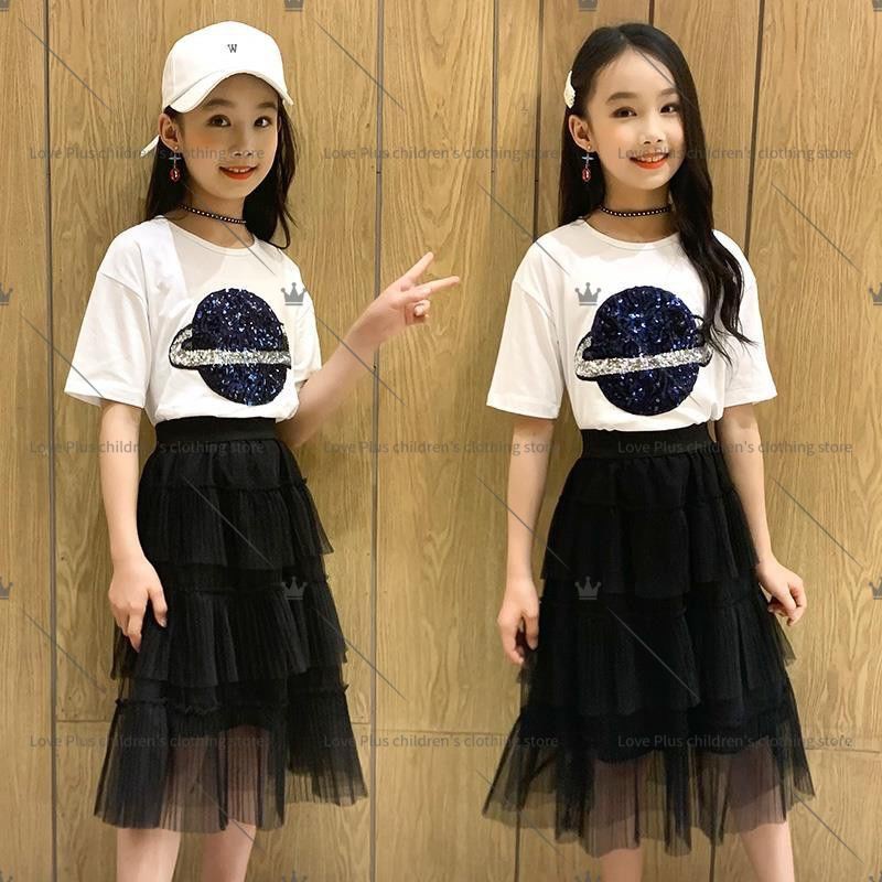 Kids Clothing Girl S Clothing Suit Summer Fashion T Shirt Tops Chiffon Long Skirt Two Piece Set 3 12y Kids Clothes Shopee Malaysia